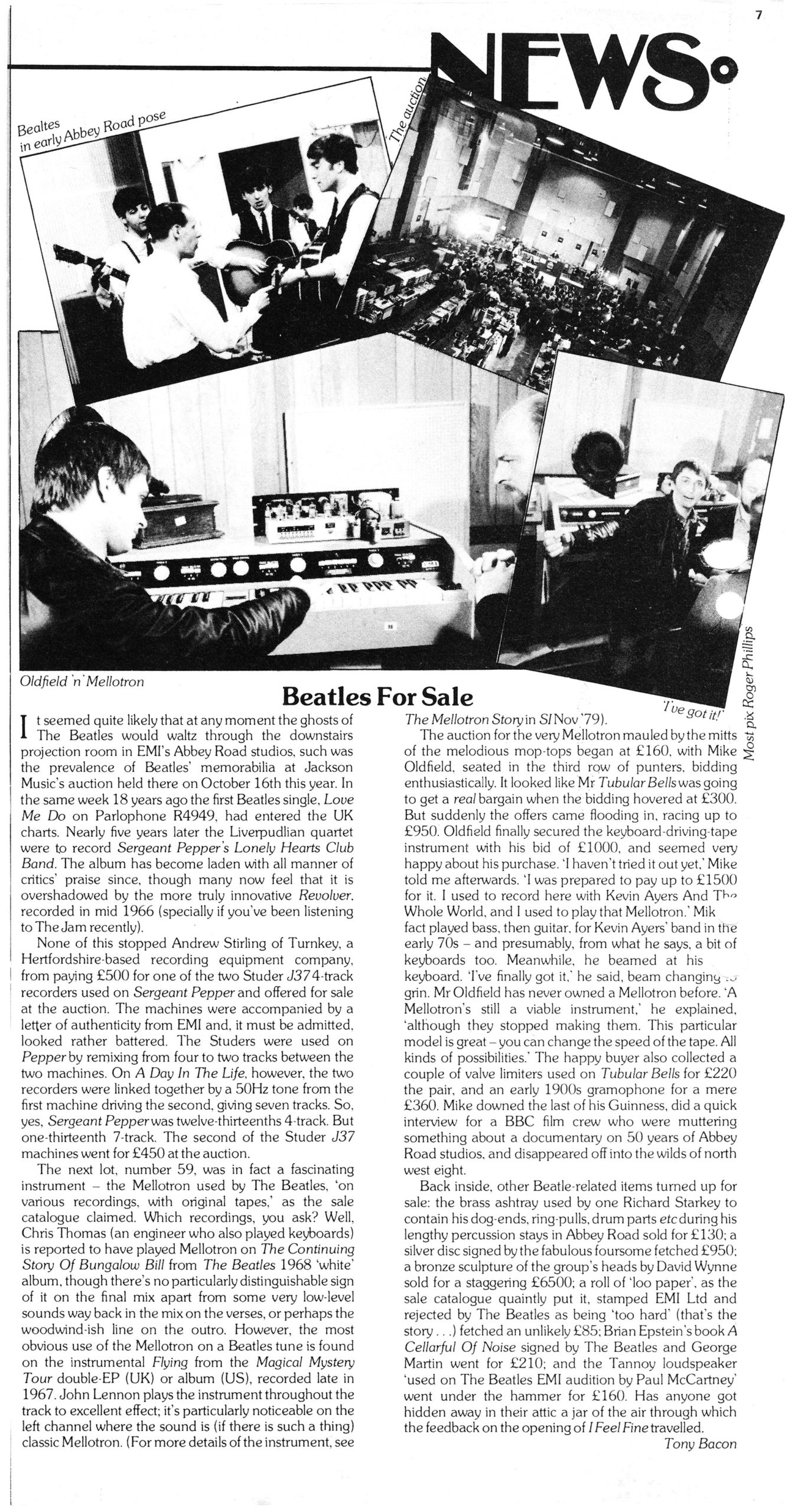 Lors d’une vente aux enchères du matériel des studios Abbey Road les 15 et 16 octobre 1980, Mike Oldfield acquiert pour £ 1000 le Mellotron FX Console qui a été utilisé notamment sur The White Album des Beatles.